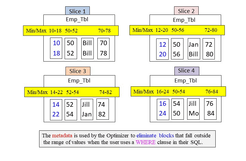 Amazon Redshift Slices Automatically Create Metadata for each Block