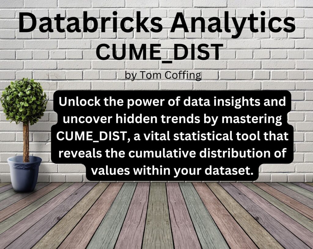 I can teach you analytics! Databricks is built for analytics, and this week, I will show you CUME_DIST, a not-so-distant cousin to RANK. You can now unlock the power of data insights and uncover hidden trends by mastering CUME_DIST, a vital statistical tool that reveals your dataset’s cumulative distribution of values.
