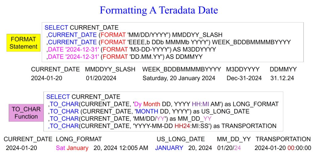 CURRENT_DATE (FORMAT 'YYYY') AS YYYY | 2024 |