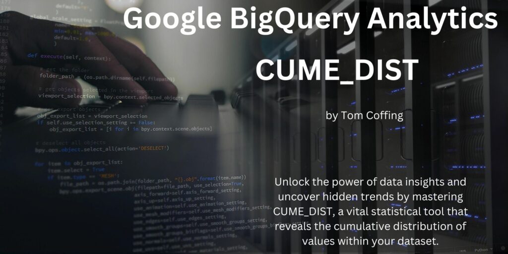 I can teach you analytics! Google BigQuery is built for analytics, and this week, I will show you CUME_DIST, a not-so-distant cousin to RANK. You can now unlock the power of data insights and uncover hidden trends by mastering CUME_DIST, a vital statistical tool that reveals your dataset’s cumulative distribution of values.