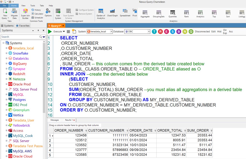 Mastering Derived Tables on Teradata