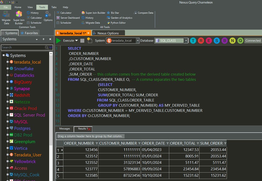 Congratulations! You have just mastered derived tables on Teradata.