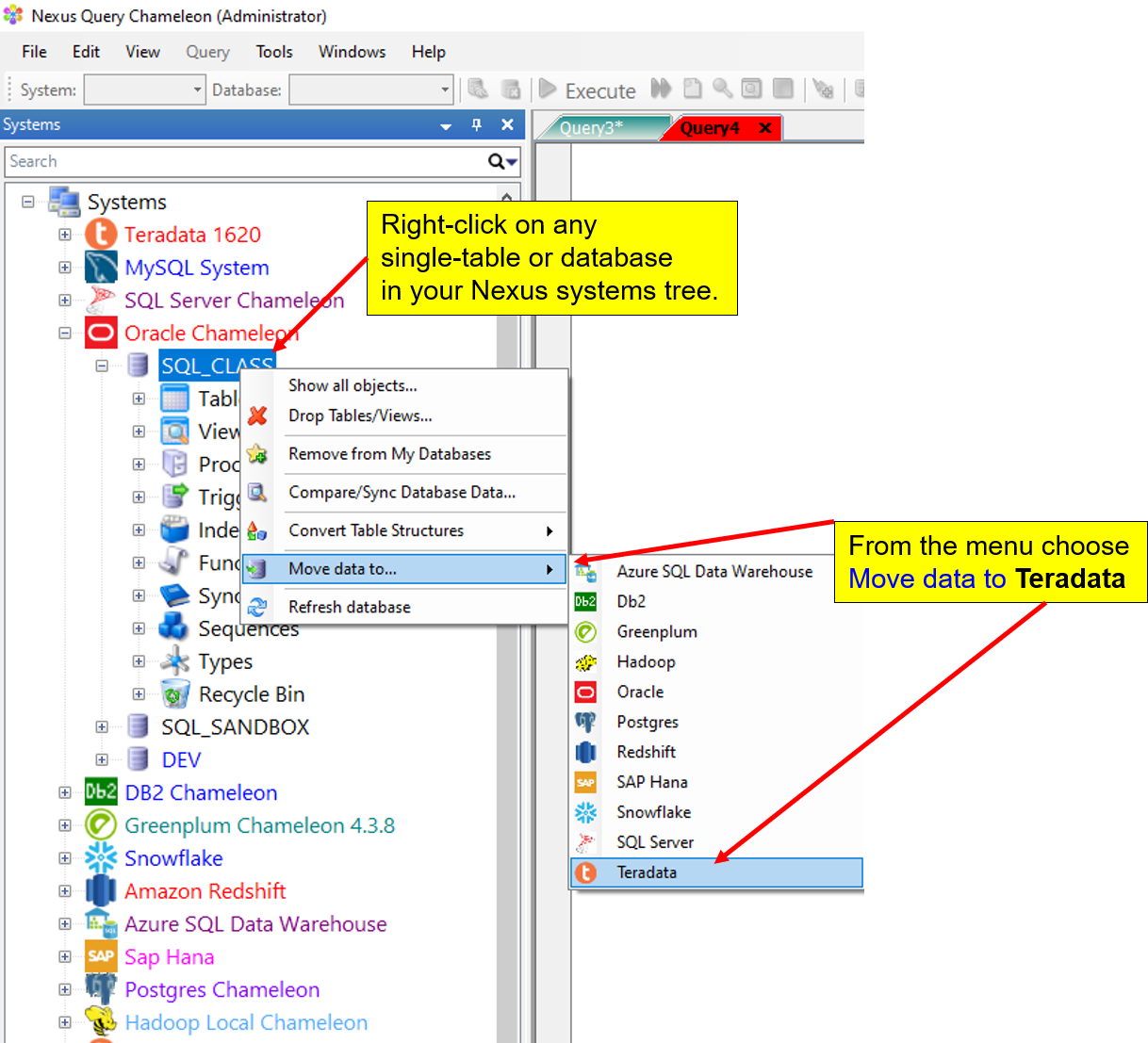 With a few clicks of the mouse, my Nexus and NexusCore Server can make the migration to Teradata easy, and it also allows each user to move data into their Teradata sandbox.  It does not get any better or easier?