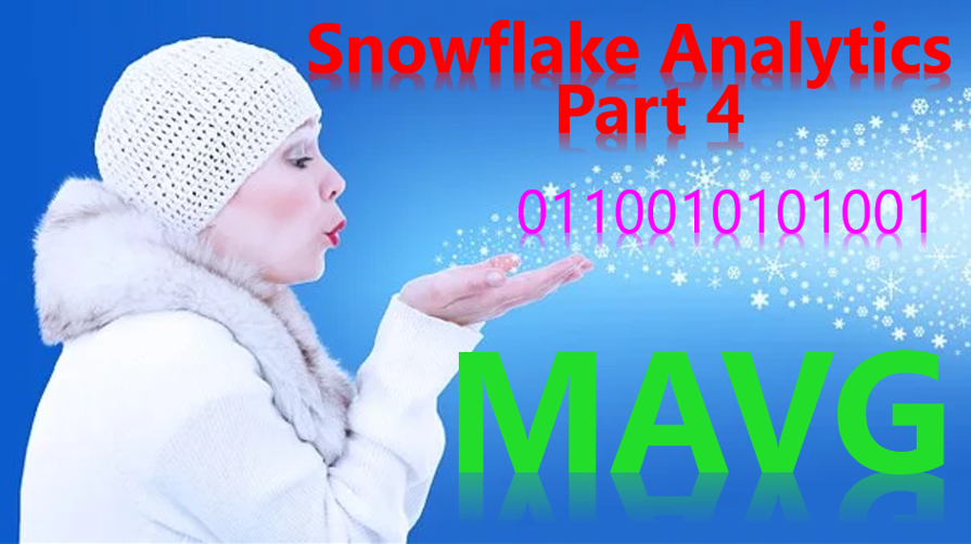 I can teach you analytics! I have never seen a database do analytics better than Snowflake. This week we are working on the Moving Average, which is interchangeable with the word MAVG. You use a Moving Average (MAVG) to look for trends. A MAVG shows you the AVG of values in a moving window, which means a certain amount of rows. If the moving window is a three, then the MAVG calculates the AVG for the values for three rows. You can then see trends by analyzing which results were higher and which were lower.