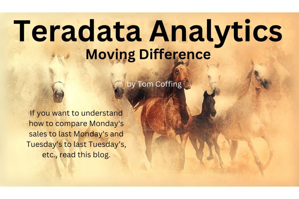 I can teach you analytics! Teradata is built for analytics, and this week, I will show you the amazing moving difference. The moving difference is one of the most incredible aspects of analytics, but it cannot seem very clear unless it is explained correctly. With power comes incredible responsibility. I won’t disappoint you.