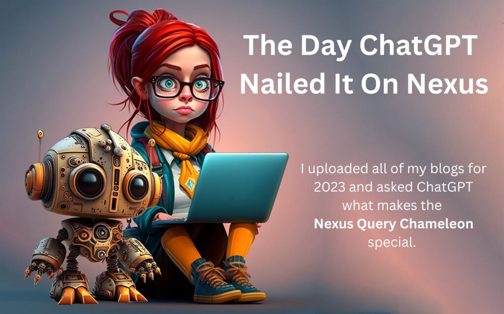I uploaded all of my blogs for 2023 and asked ChatGPT what makes my Nexus Query Chameleon special in today’s environment. I was shocked at how ChatGPT nailed it.