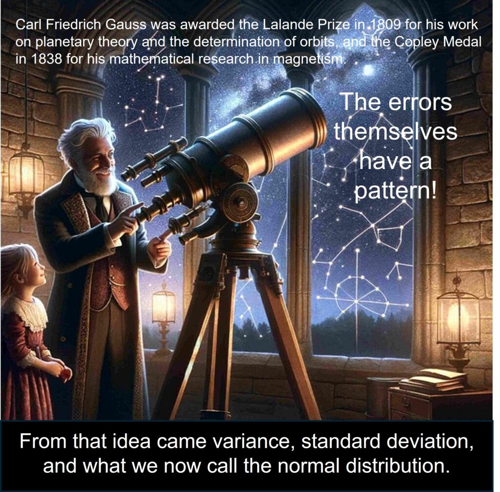 Carl Friedrich Gauss figured this out over 200 years ago while trying to understand why astronomers kept getting different answers when measuring the same stars. He realized the variation wasn’t the problem — misunderstanding it was. By measuring spread rather than ignoring it, he gave us a way to see clearly rather than guess.